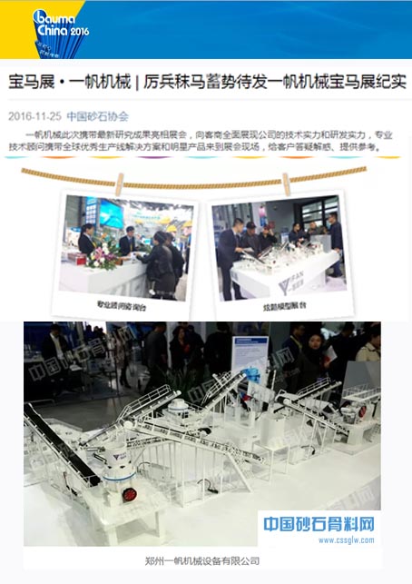 此外,本次一帆機械展會期間也受到了眾多媒體的關注,砂石骨料和破碎篩分行業的專業平臺也對一帆機械此次寶馬展上的表現給予稱贊,其中中國砂石協會網、中國砂石骨料網、中磚網等平臺也以文字和圖片形式對寶馬展上的一帆風采進行了跟蹤報道。