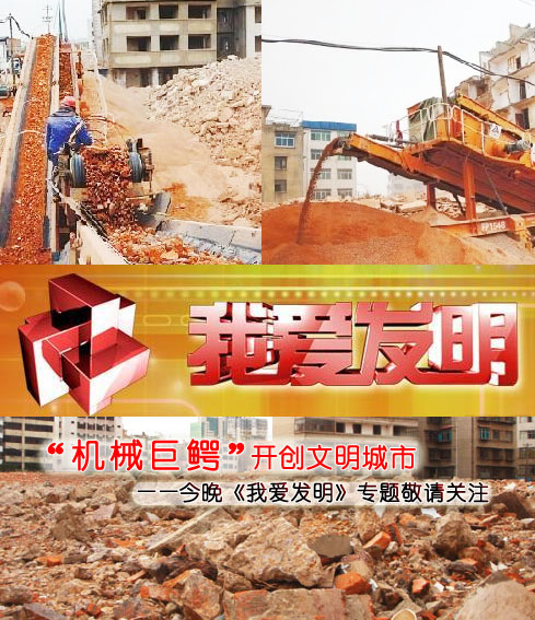 今晚18:55中央電視臺10頻道《我愛發明》欄目將為大家揭開建筑垃圾處理設備——移動破碎站如何將建筑垃圾領上資源化發展的道路,并為您一一解讀一種可以把建筑垃圾一口一口吃掉并吐出“黃金”的設備是如何幫您實現投資致富的,這種高效環保、節能快捷的建筑垃圾處理設備的神秘面紗在今晚即將被揭開,敬請各行各業關注。