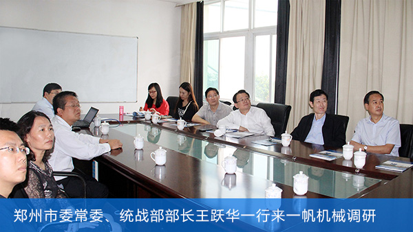 2014年9月23日,正值中國農歷二十四節氣中的秋分之日,鄭州市委常委、統戰部部長王躍華一行來到了一帆機械滎陽廠區,對公司上半年的發展狀況進行考察調研。張總、代總等公司領導對王部長一行人進行了熱烈的歡迎。
